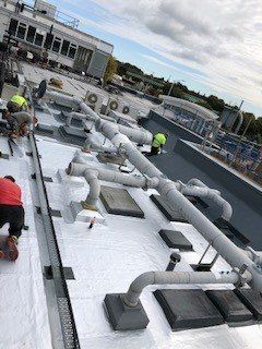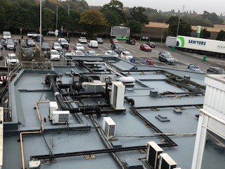 1115m2 of roof area in Knutsford overlaid with Alumasc Caltech liquid resin